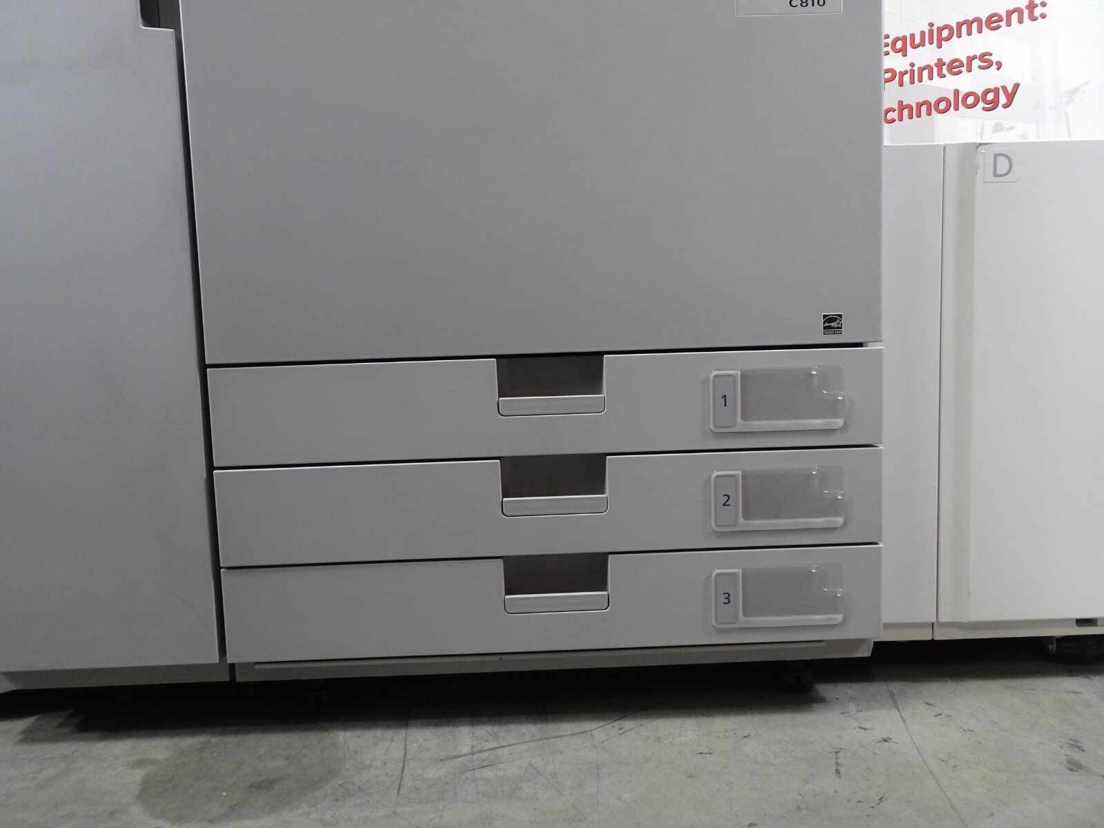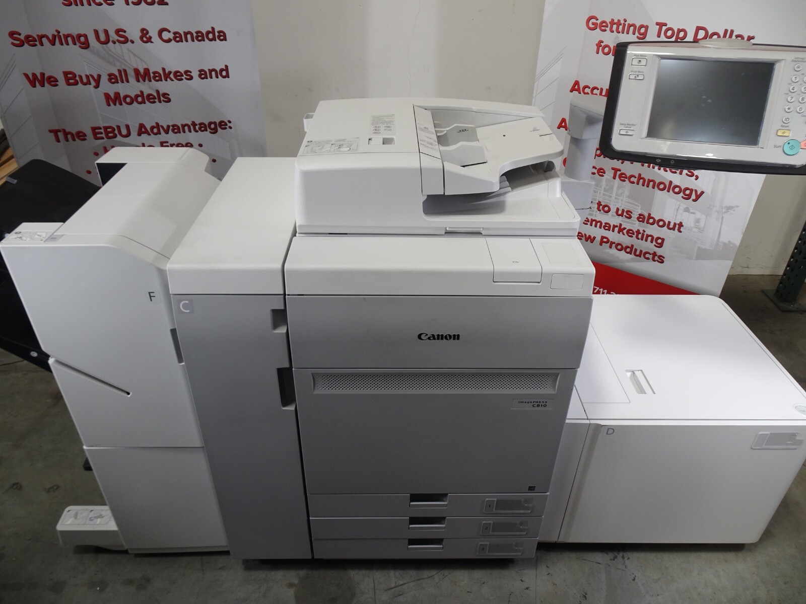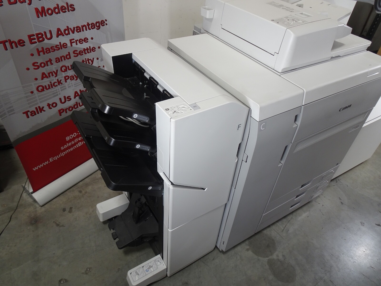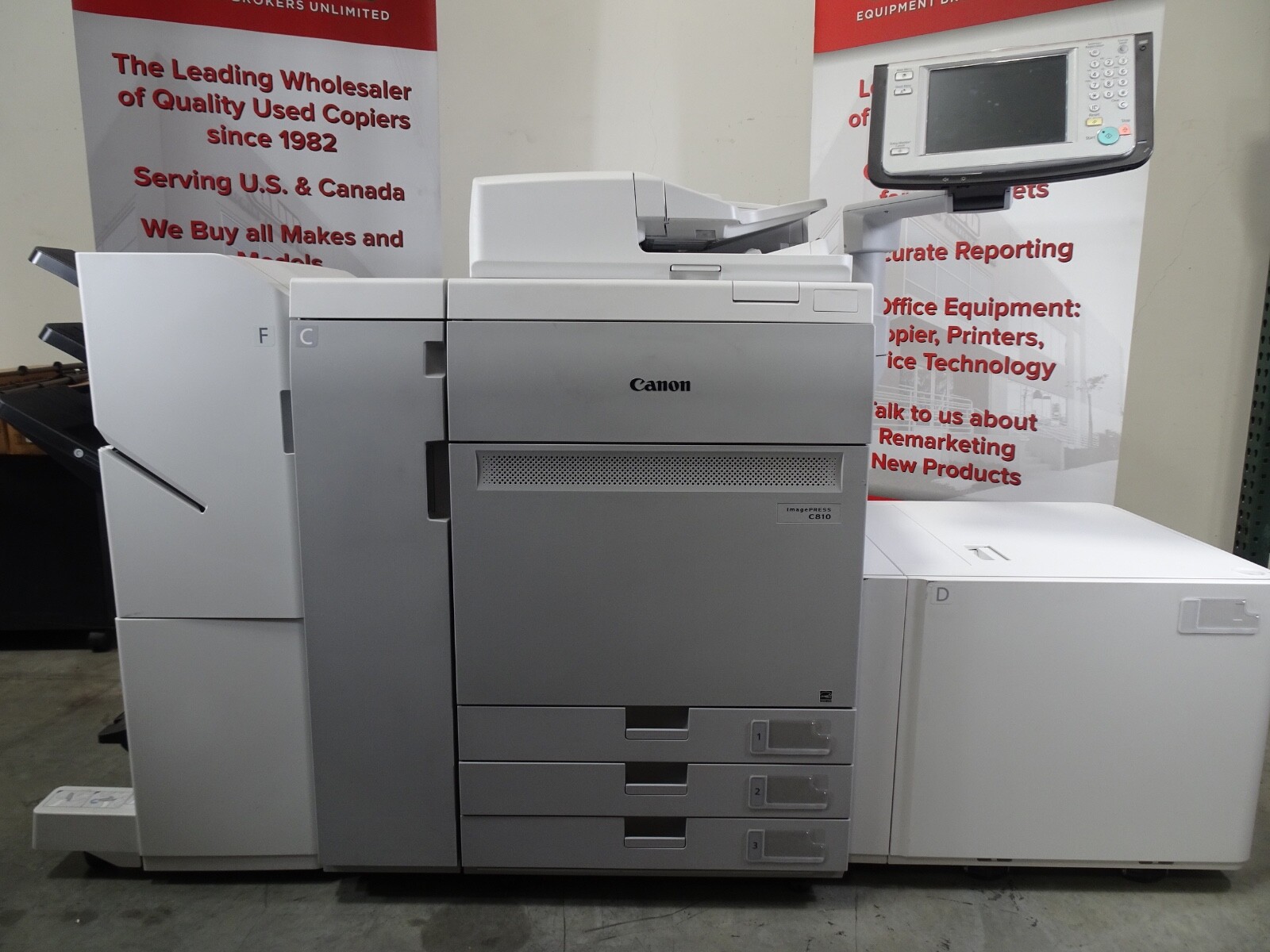 The Canon ImagePress C810 is a 80 page per minute black and white and 80 page per minute color copier, printer, and scanner from Canon. This Canon ImagePress C810 has only 276,526 copies on it and includes automatic document feeder, C1 Pod Deck Lite LCT, H350 Fiery Print controller and W1 Booklet Finisher. Recommended monthly usage on the ImagePress C810 is 500,000 copies, so with 276,526 copies this machine is at under 1 months usage. All of our copiers are tested and inspected by a certified technician. All of our copiers are guaranteed to pass service inspection (excluding consumables replacement) and come with a 100% satisfaction guarantee; if you are not happy we will pick up the copier and issue a full refund. Retail price on this Canon ImagePress C810 is $24,995, our wholesale price is $10,995. Shipping and insurance to the continental United States is included in the purchase price. Shipping quotes to Hawaii, Alaska and Canada are available.