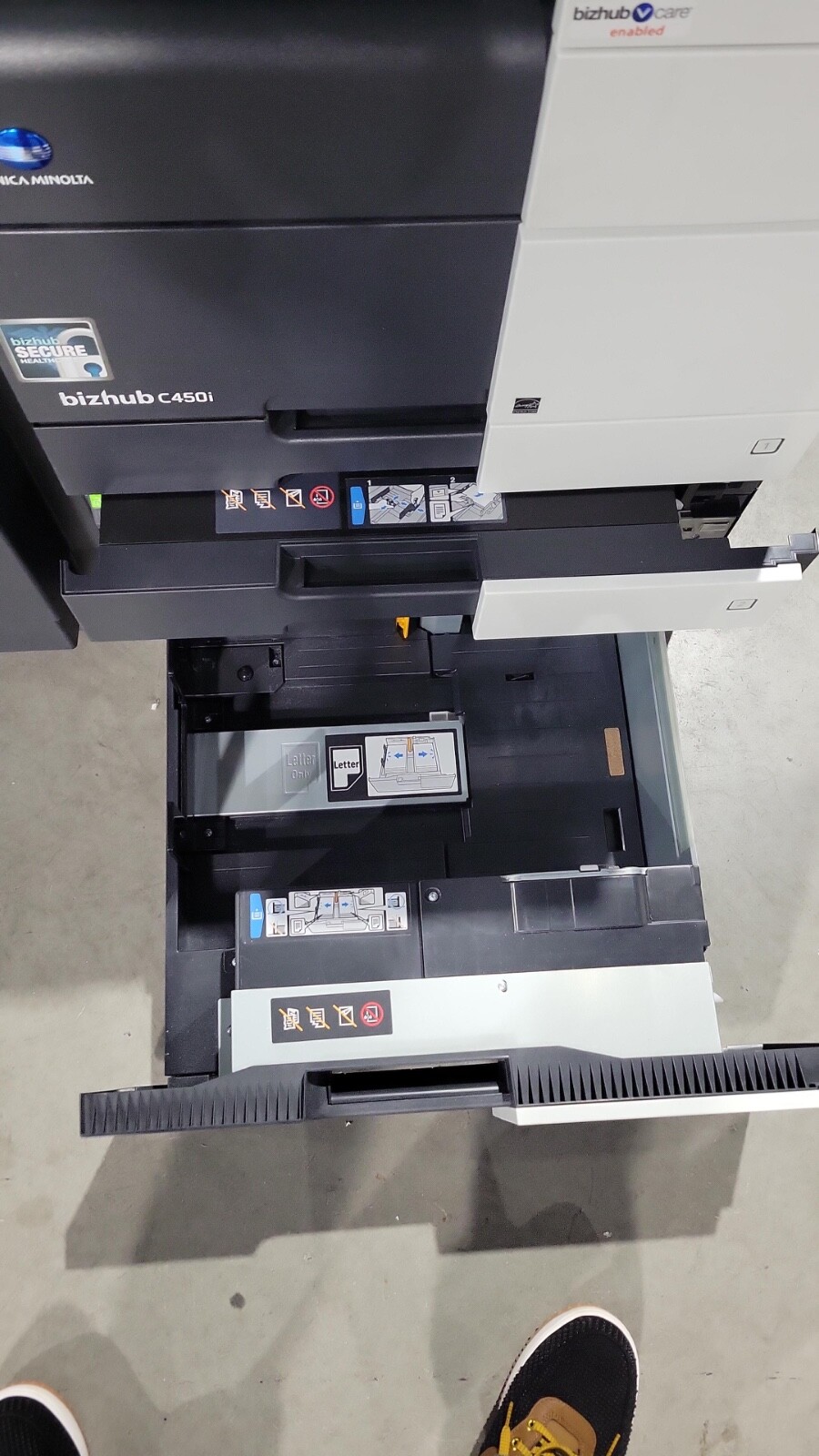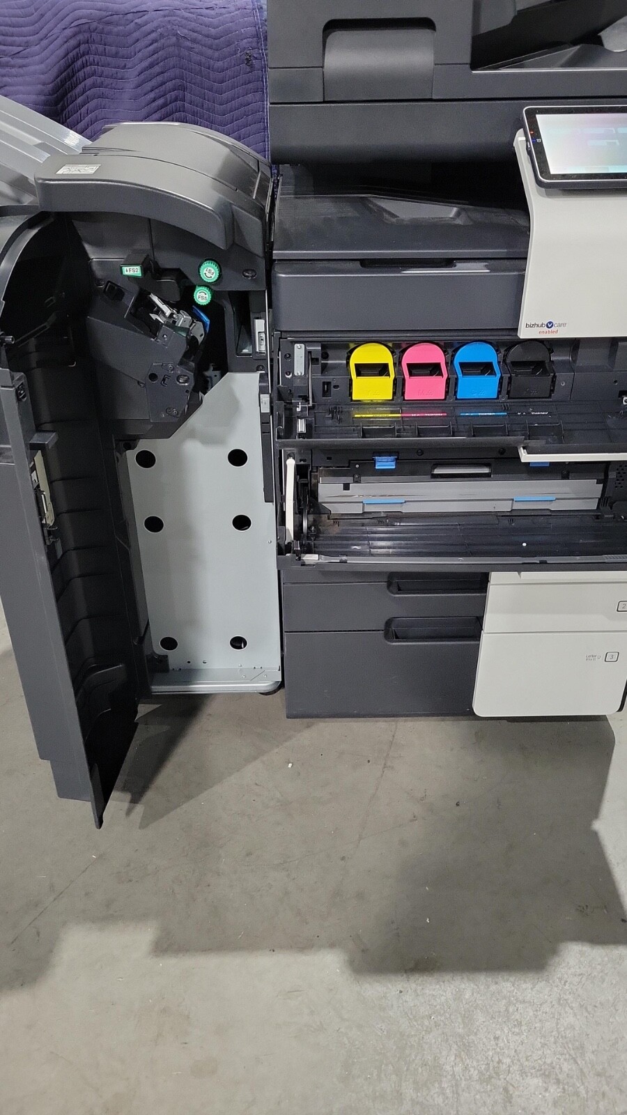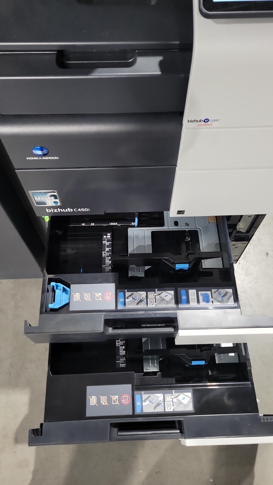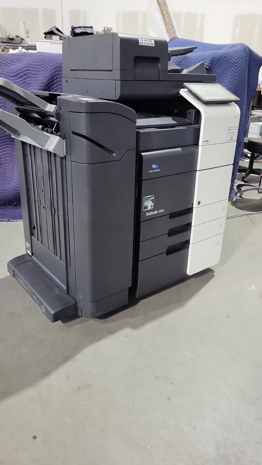 The Konica Bizhub C450i is a 45 page per minute black and white and a 45 page per minute color copier, printer, and scanner from Konica. This Konica Minolta C450i has only 63,847 total copies on it. This Konica Bizhub C450i includes automatic document feeder, network print, network scan and staple finisher. Recommended monthly volume on this Konica Minolta C450i is 75,000, so with only 63,847 copies this machine is at just under 1 months usage. All of our copiers are tested and inspected by a certified technician. All of our copiers are guaranteed to pass service inspection (excluding consumables replacement) and come with a 100% satisfaction guarantee; if you are not happy we will pick up the copier and issue a full refund. Retail price on this Konica Minolta Bizhub C450i is $6,995, our wholesale price is $3,995. Shipping and insurance to the continental United States is included in the purchase price. Shipping quotes to Hawaii, Alaska and Canada are available.