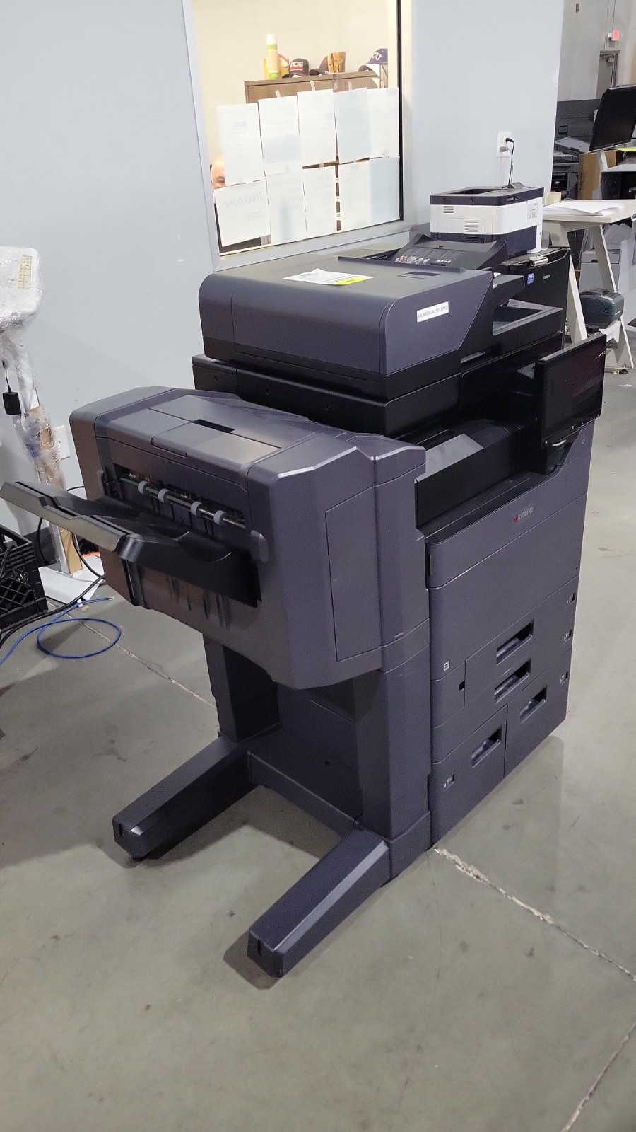 The Kyocera Task Alfa 5004i is a 50 page per minute black and white copier, printer, and scanner from Kyocera. This Kyocera Task Alfa 5004i has only 191,750 total copies and includes doc feeder, network print and scan controller, 4 paper trays and DF7120 staple finisher. Recommended monthly usage on this Kyocera Task Alfa 5004i is 100,000 copies, so with only 191,750 copies this machine is at less than 2 months usage. All of our copiers are tested and inspected by a certified technician. All of our copiers are guaranteed to pass service inspection (excluding consumables replacement) and come with a 100% satisfaction guarantee; if you are not happy we will pick up the copier and issue a full refund. Retail price on this Kyocera Task Alfa 5004i is $7,995, our wholesale price is $3,995. Shipping and insurance to the continental United States is included in the purchase price. Shipping quotes to Hawaii, Alaska and Canada are available.