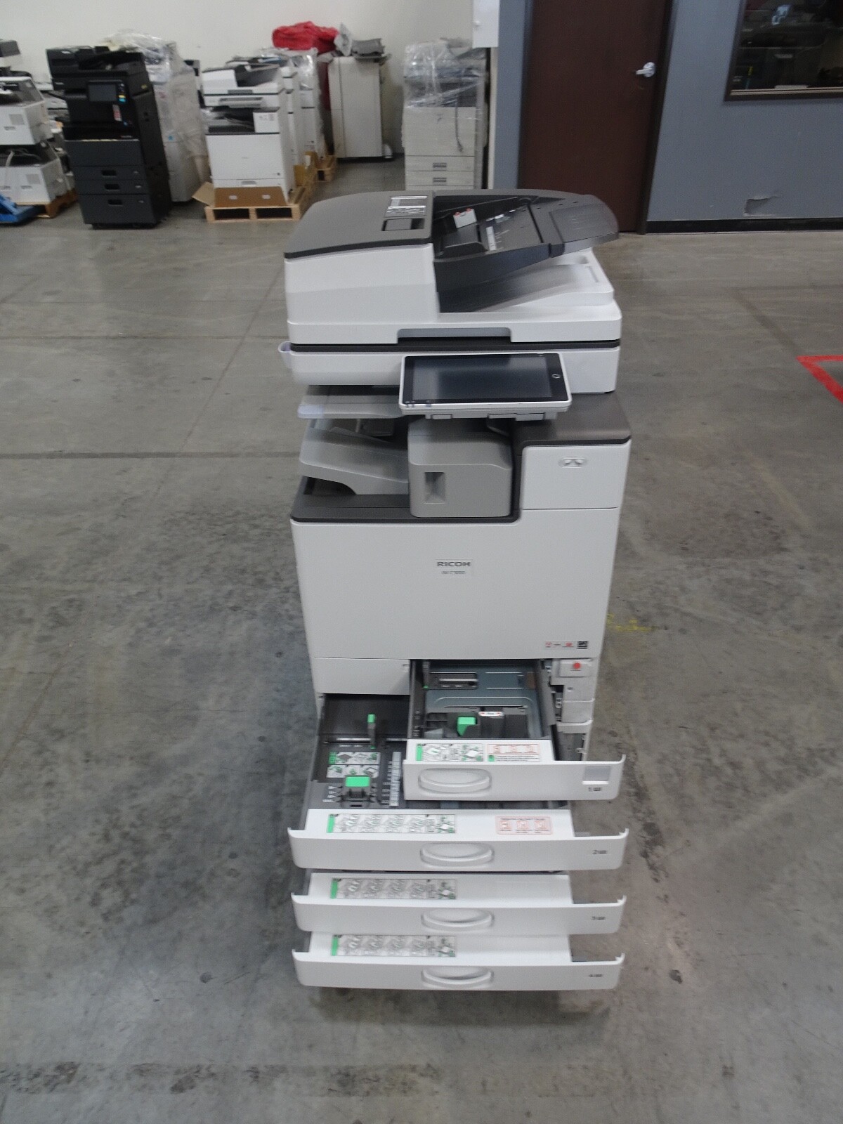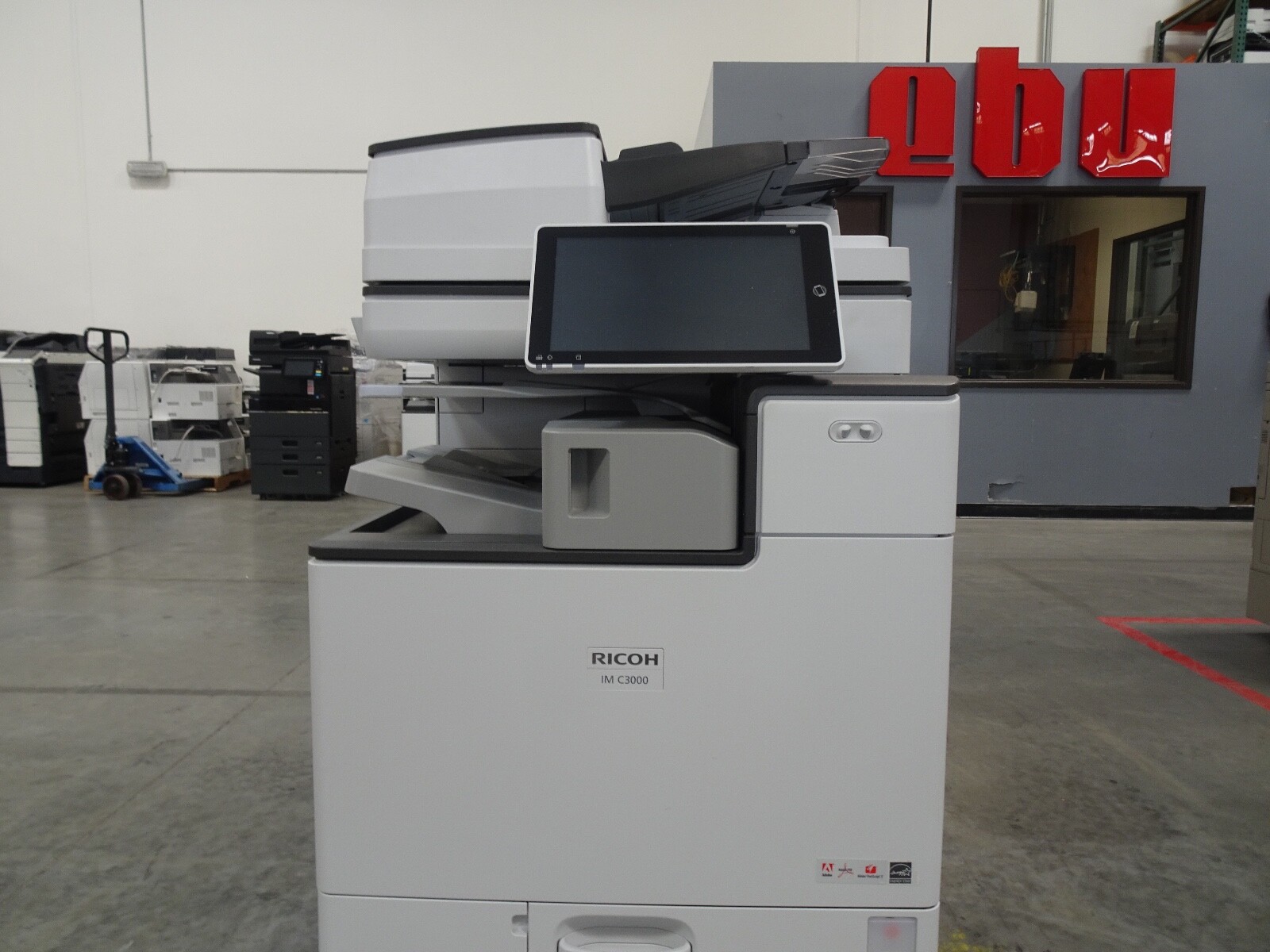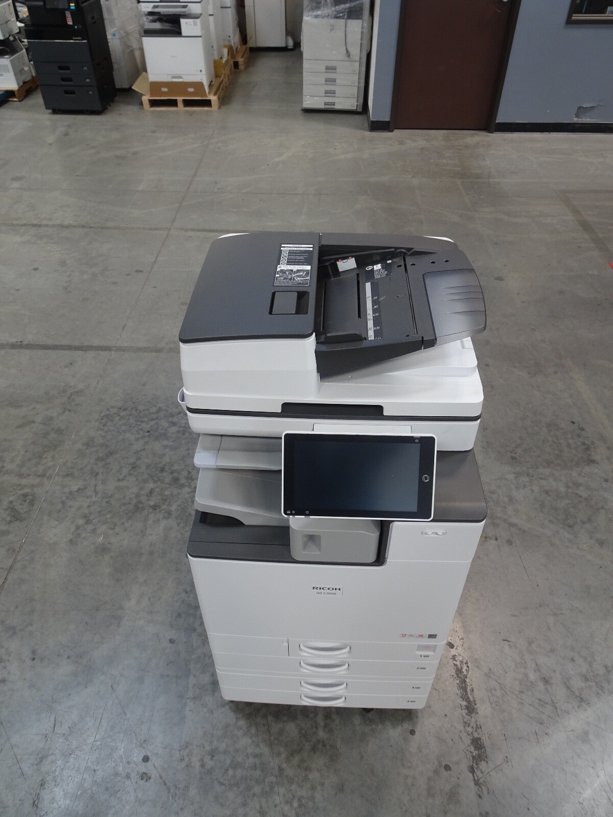 The Ricoh IM C3000 is a 30 page per minute black and white and 30 page per minute color copier, printer, and scanner from Ricoh. This Ricoh IM C3000 has only 28,147 copies includes automatic document feeder, duplex unit for two-sided copying, network print controller, network scan controller, fax option, internal staple finisher and 4 paper trays. Recommended monthly volume on this Ricoh IM C3000 is 50,000 copies, so with only 28,147 copies this unit is at less than 1 months usage. All of copiers are tested and inspected by a certified technician. All of our copiers are guaranteed to pass service inspection and come with a 100% satisfaction guarantee; if you are not happy we will pick up the copier and issue a full refund. Retail price on this Ricoh IM C3000 is $6,995, our wholesale price is $3,495. Shipping and insurance to the continental United States is included in the purchase price. Shipping quotes to Hawaii, Alaska and Canada are available.