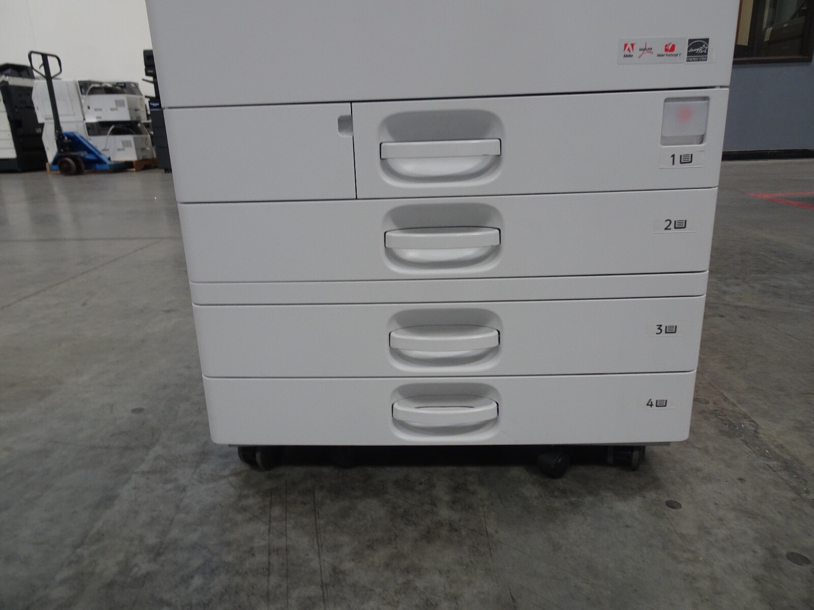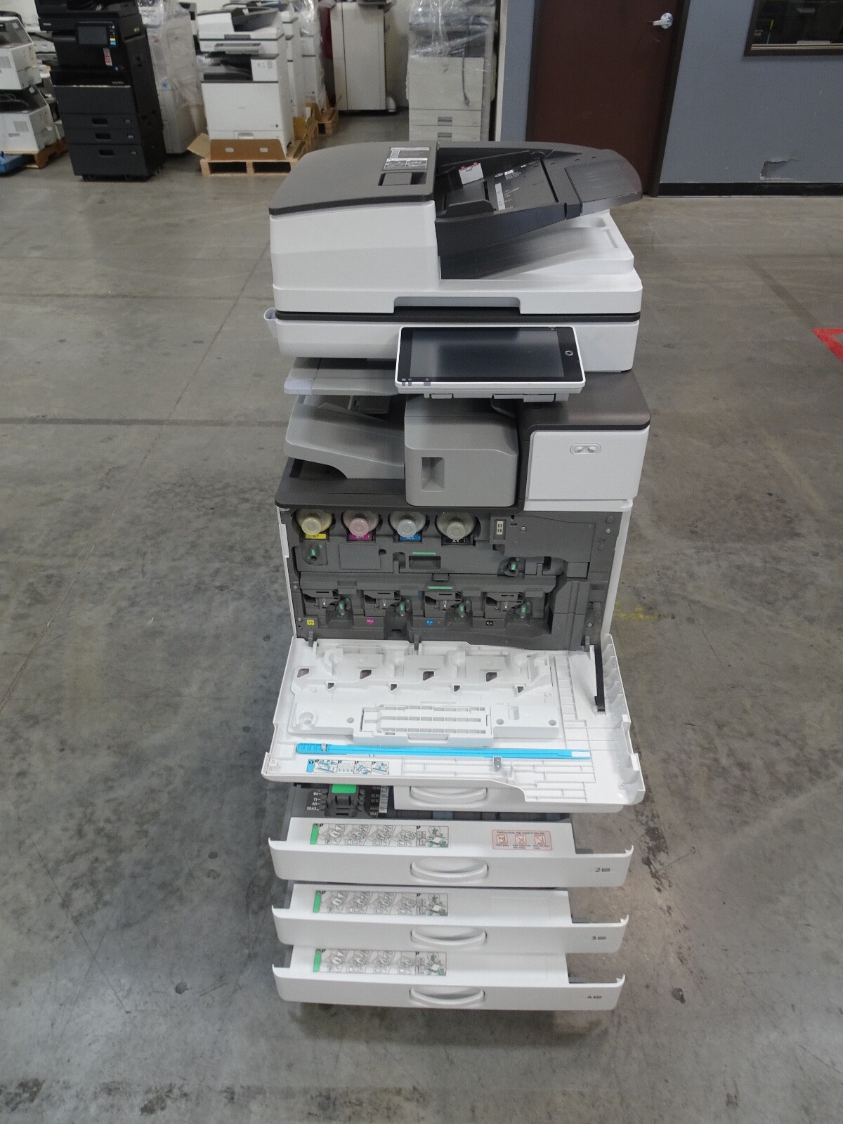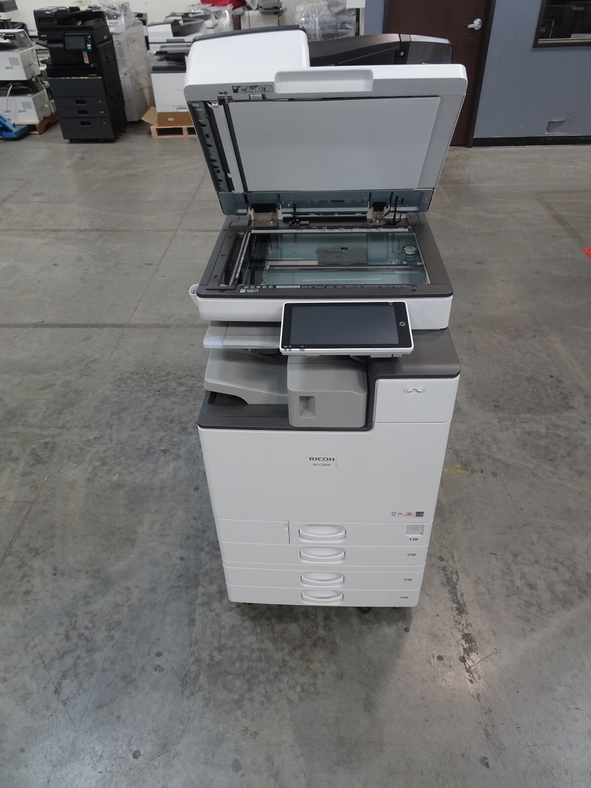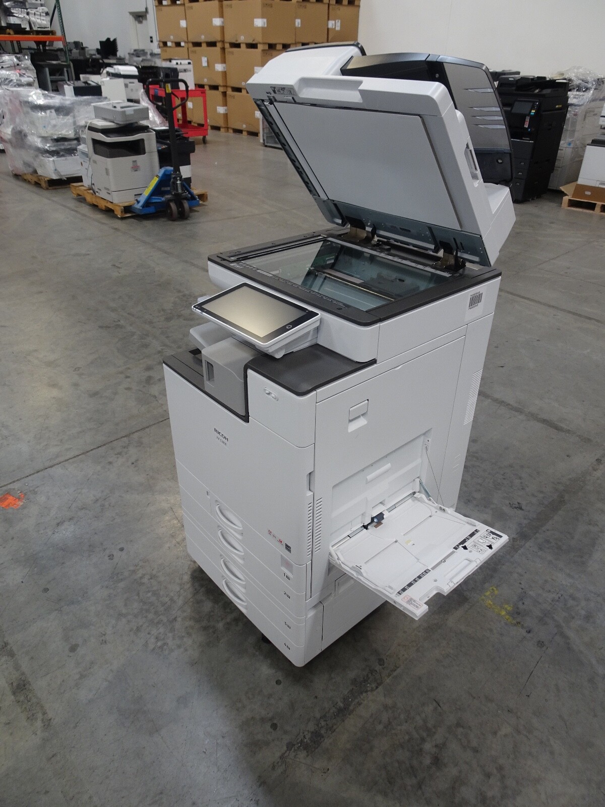 The Ricoh IM C3000 is a 30 page per minute black and white and 30 page per minute color copier, printer, and scanner from Ricoh. This Ricoh IM C3000 has only 28,147 copies includes automatic document feeder, duplex unit for two-sided copying, network print controller, network scan controller, fax option, internal staple finisher and 4 paper trays. Recommended monthly volume on this Ricoh IM C3000 is 50,000 copies, so with only 28,147 copies this unit is at less than 1 months usage. All of copiers are tested and inspected by a certified technician. All of our copiers are guaranteed to pass service inspection and come with a 100% satisfaction guarantee; if you are not happy we will pick up the copier and issue a full refund. Retail price on this Ricoh IM C3000 is $6,995, our wholesale price is $3,495. Shipping and insurance to the continental United States is included in the purchase price. Shipping quotes to Hawaii, Alaska and Canada are available.