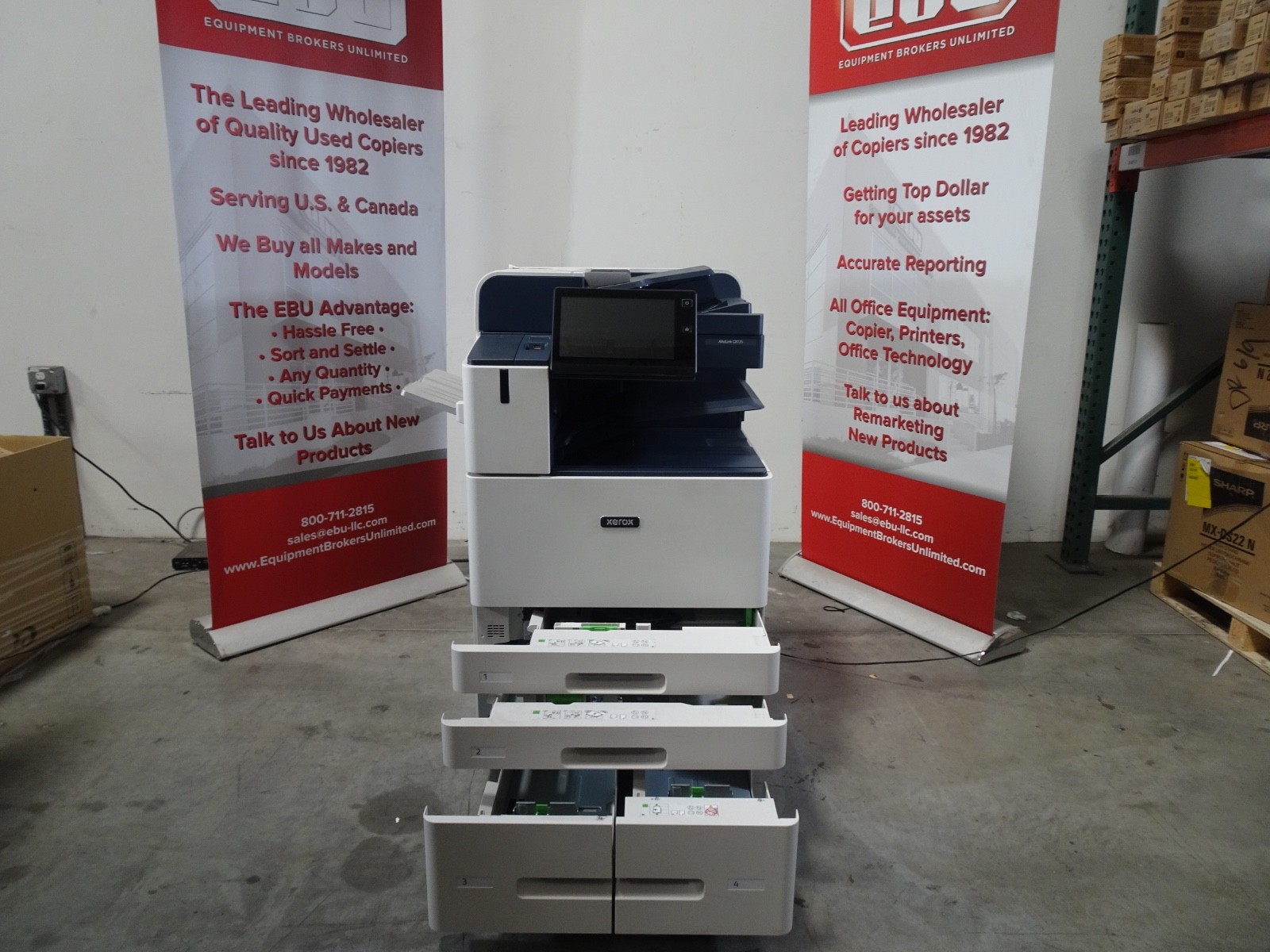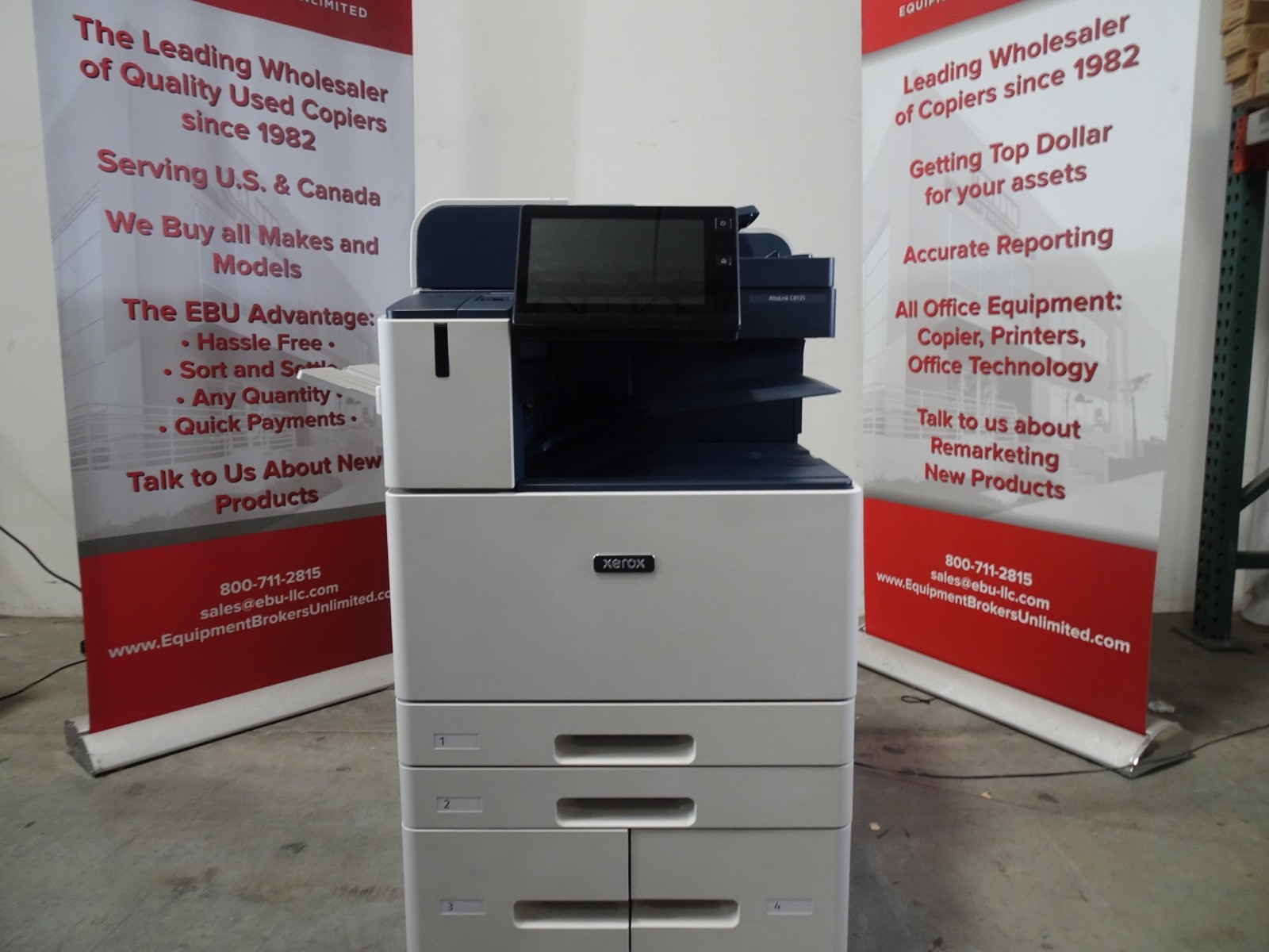 The Xerox AltaLink C8135 is a 35 page per minute black and white and 35 page per minute color copier, printer and scanner from Xerox. This Xerox AltaLink C8135 has only 15,189 copies and includes automatic document feeder, network print, network scan and 4 paper trays.  All of our copiers are tested and inspected by a certified technician. All of our copiers are guaranteed to pass service inspection (excluding consumables replacement) and come with a 100% satisfaction guarantee; if you are not happy we will pick up the copier and issue a full refund. Retail price on this Xerox AltaLink C8135 is $10,995, our wholesale price is $3,495. Shipping and insurance to the continental United States is included in the purchase price. Shipping quotes to Hawaii, Alaska and Canada are available.